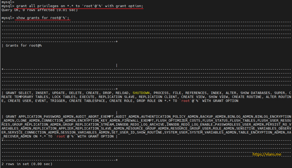 show grants for root@'%';