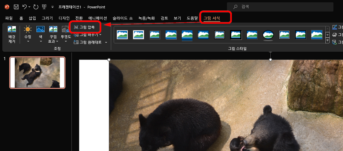 원본 이미지를 파워포인트에 넣고 "상단 메뉴 → 그림 서식"